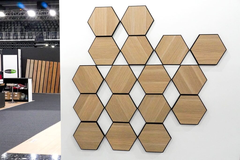 HexDeSil paneli jednostavno se postavljaju na zidove, pružajući istovremeno estetski i akustični učinak.