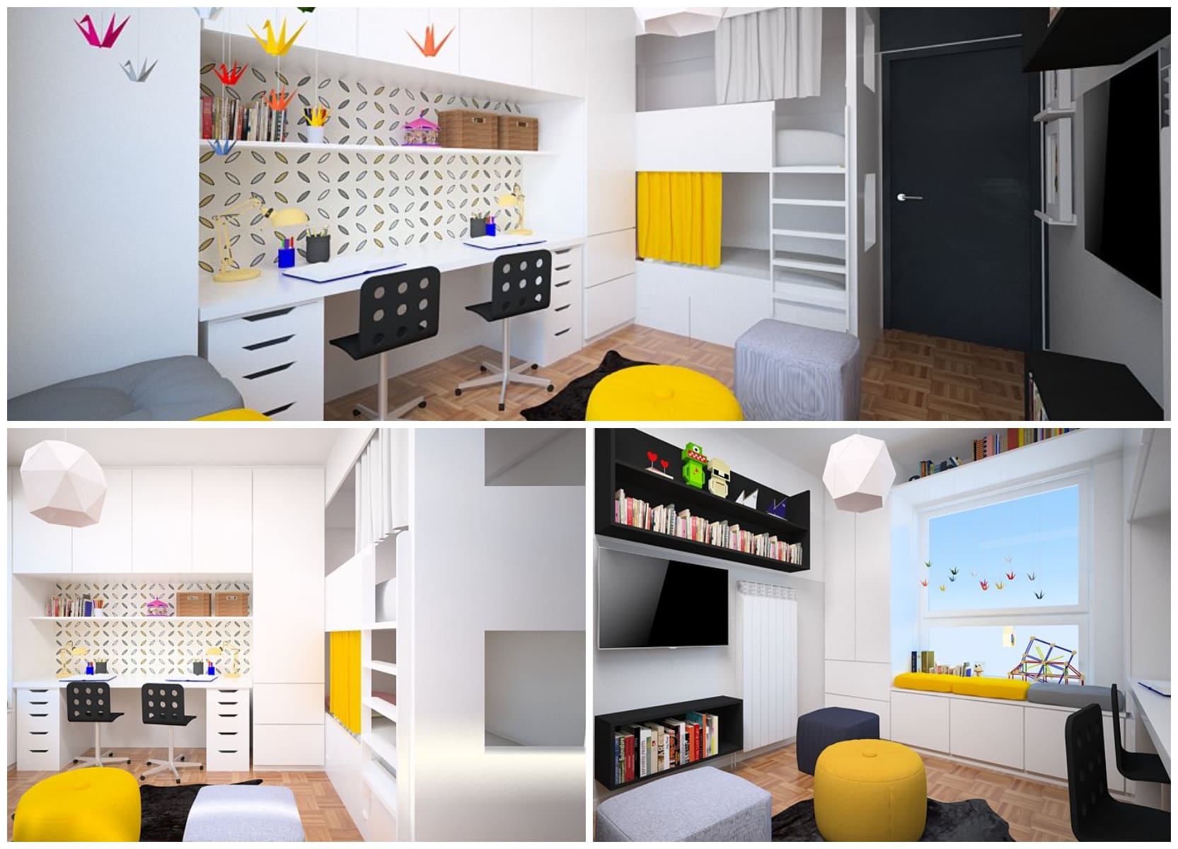 Zahtjevi roditelja bili su jednostavno, moderno i funkcionalno uređen prostor za dvoje djece u kojem će se maksimalno iskoristiti kvadratura.