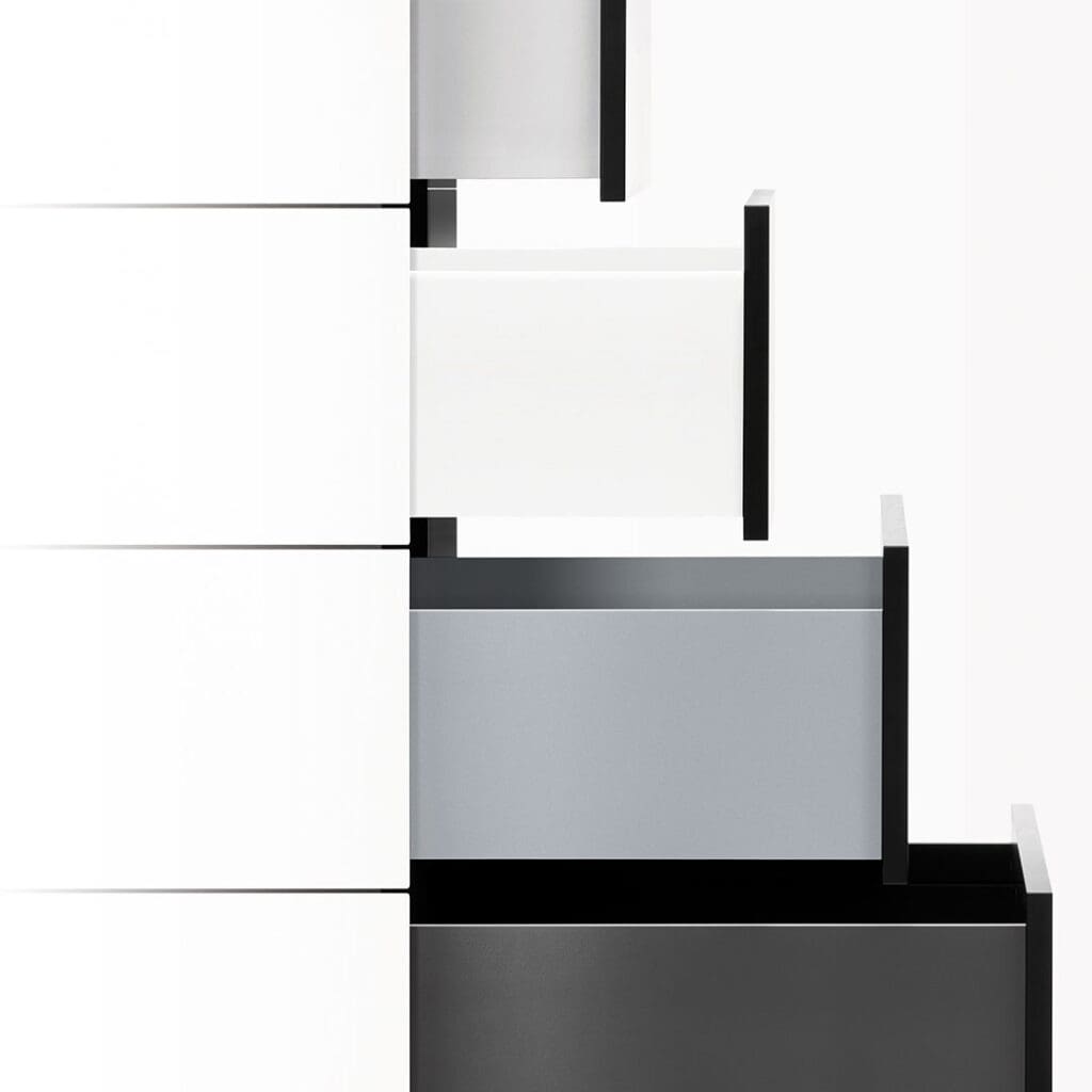 Plastificirane Vionaro čelične stranice ladica u 4 boje su u harmoniji sa svim modernim dizajnima interijera.