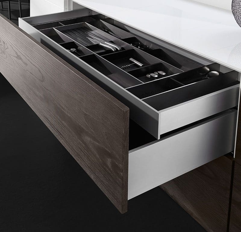 Otvarajući inovativne Vionaro ladice, vidjet ćete inkarnaciju vizije sustava pokretanja. Stvoren za sve životne prostore, vitak i klasičan dizajn budućnosti. Uglađena, apsolutno glatka površina pokazuje da se super tanka Vionaro stranica ladice sastoji iz jednog dijela.