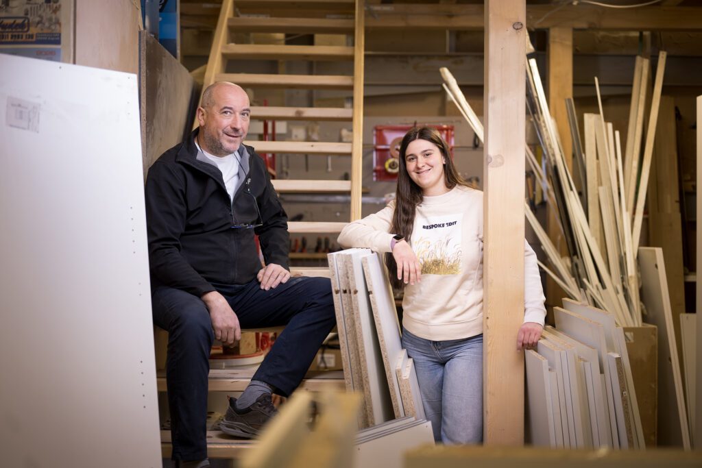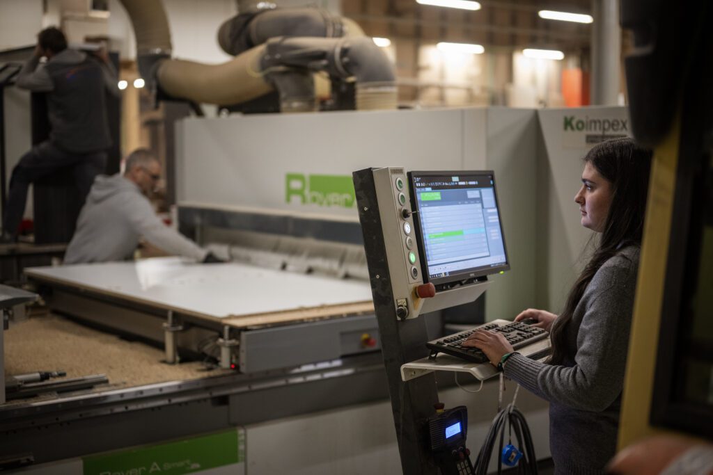 Karla je odrasla uz drvo, strojeve i piljevinu. Dok su još bili u maloj radionici u Dubravi, dolazila je s mamom gledati tatu kako radi. Ona, sestre i brat motali su se oko strojeva, dodavali, držali, pomagali koliko su mogli. Karla se dobro sjeća tog osjećaja – da je radionica normalan dio svakodnevice.