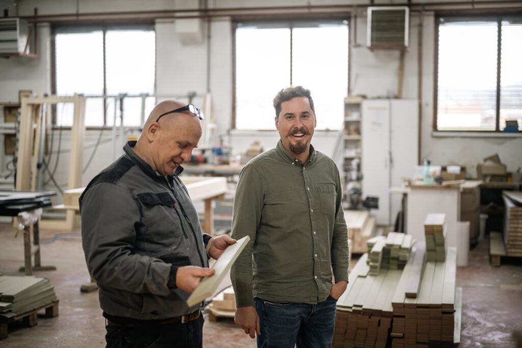 Matija ima 35 godina. Završio je drvnu tehnologiju na Šumarstvu, četvrti stupanj stolarske škole prije toga, i praktički je cijeli život proveo u radionici. U posao su ga uveli djed i pokojni otac – čovjek koji je malu stolariju svog oca doveo do ovoga što je danas – tvrtka koja zapošljava na desetke ljudi.
