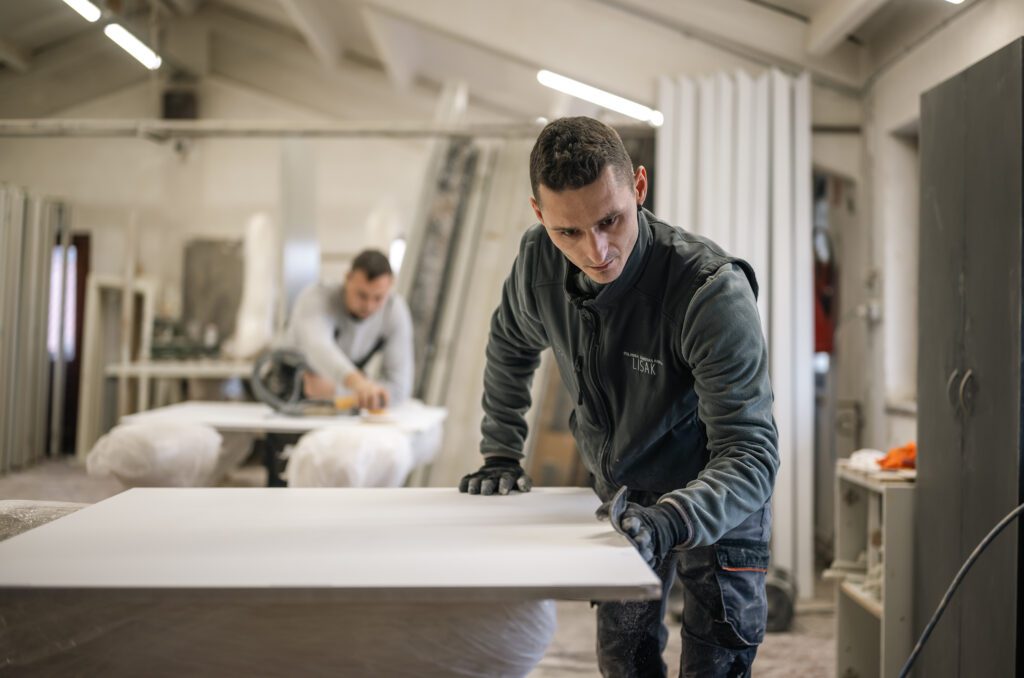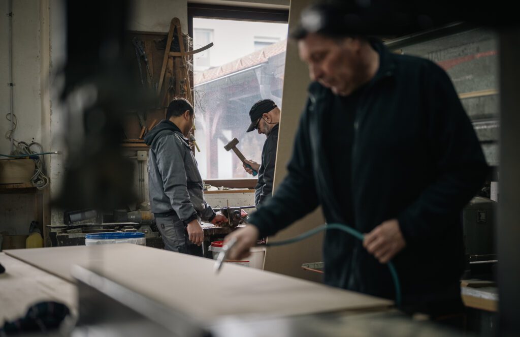 U radionici je posao jasno podijeljen. Netko radi samo vrata. Netko je zadužen za namještaj. Netko za vanjsku stolariju. „Ne može danas jedan čovjek raditi sve“, kaže Matija. „Specijalizacija je nužna.“